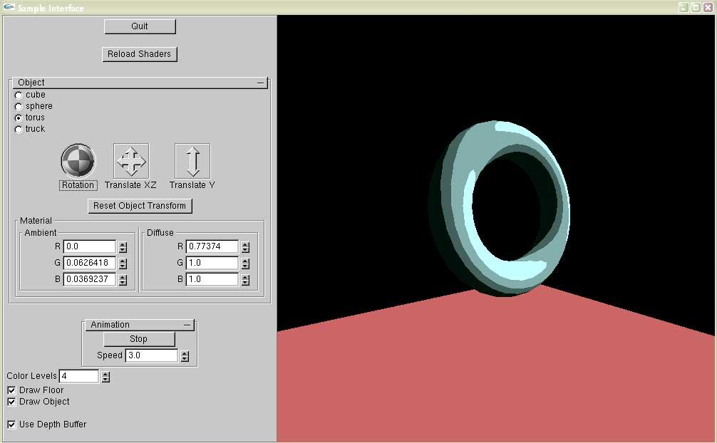Here is a comparison of OpenGL's builtin lighting model and the cel-shader program: